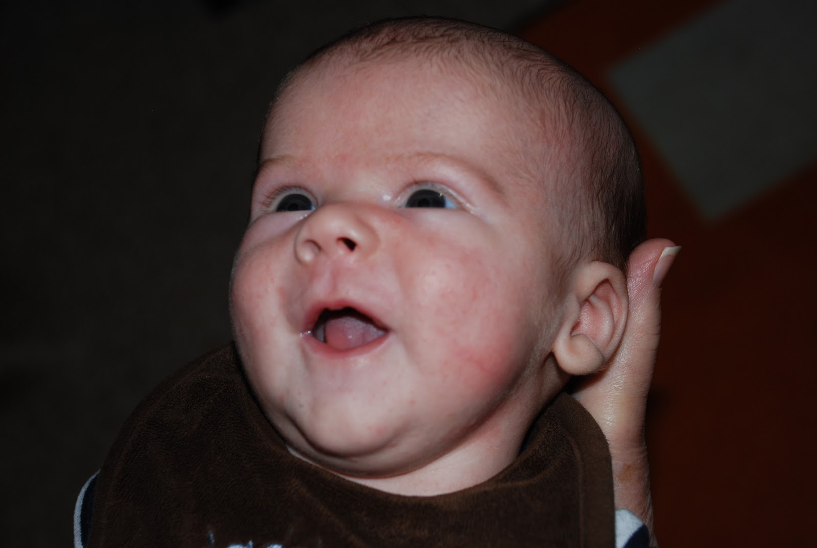 We were both extra happy this morning. You had a wonderful nights rest.... you went 8 hours!!!!! That of course means Mommy got some good sleep too :)